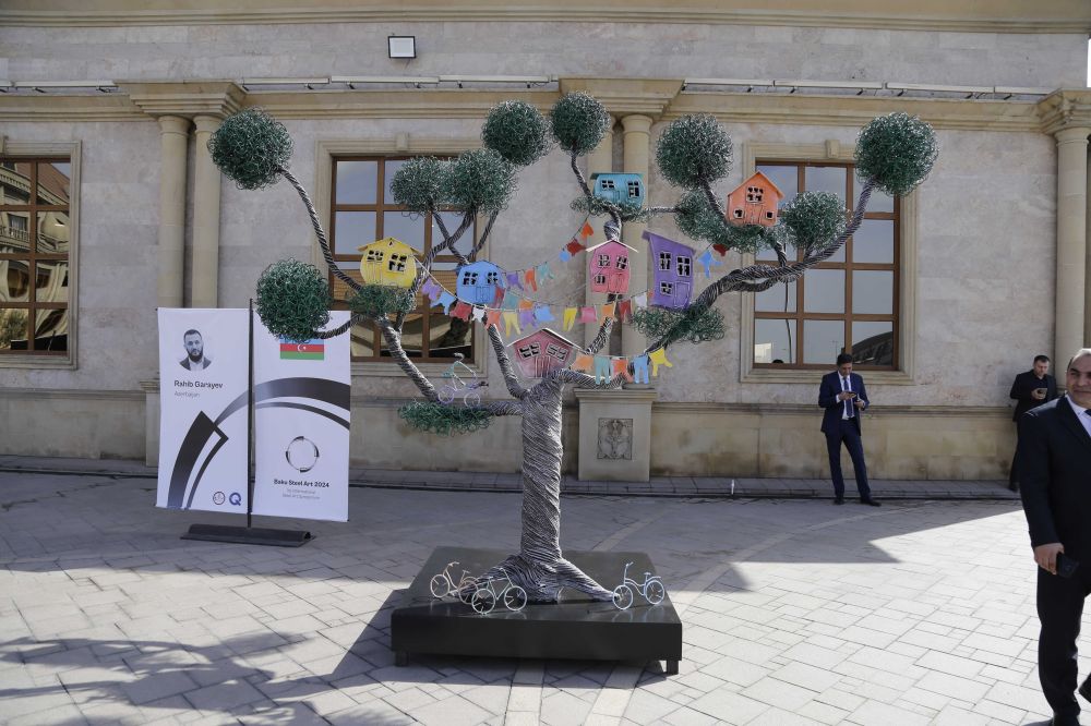 Rahib Qarayev “Baku Steel Art 2024” metal simpoziumu çərçivəsində “Nağıl şəhər” adlı əsər yaradıb: “Bu əsərin mərkəzi elementi - həyatı və bütün canlıların birliyini simvolizə edən metal bir ağacdır. Ondan əlavə, əsərdə 7 fərqli rəngdə ev, məişət əşyaları və velosiped sürən insan elementlərindən istifadə olunub. Ağac - güc, dirçəliş və ətraf mühitlə bağlılıq ideyasını, ev - dostluq, birlik və xoşbəxtliyi, velosiped sürən insan - ekoloji təmiz həyatı, məişət əşyaları - belə bir dünyanın mümkünlüyünü əks etdirir. “Nağıl şəhər” əsərinin yaradılmasında məqsəd ekosistemin əhəmiyyətini, onun fasiləsiz olaraq qorunmalı olduğunu xatırlatmaqdır”.