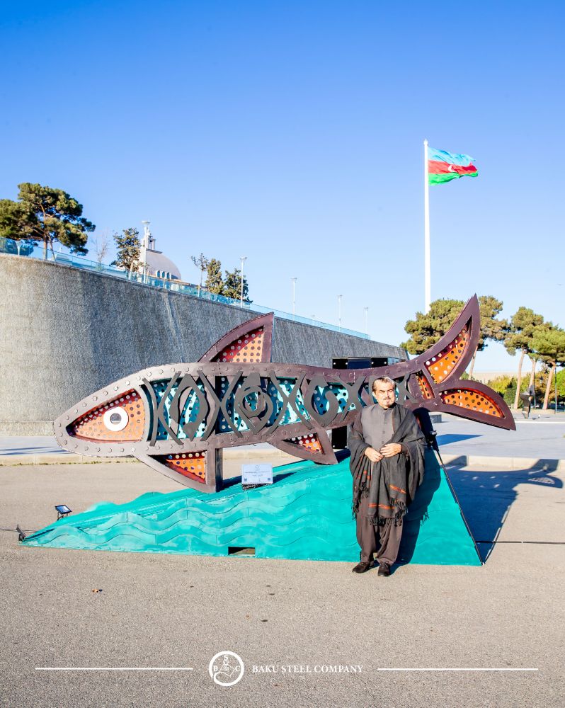 На симпозиуме «Baku Steel Art 2025» Джамал Шах представил работу «Древняя рыба Мехргарх». «Это произведение, в котором за основу взята тема воды, вдохновлено 9500-летней цивилизацией Мехргарх, находившейся в регионе Белуджистан в Пакистане.