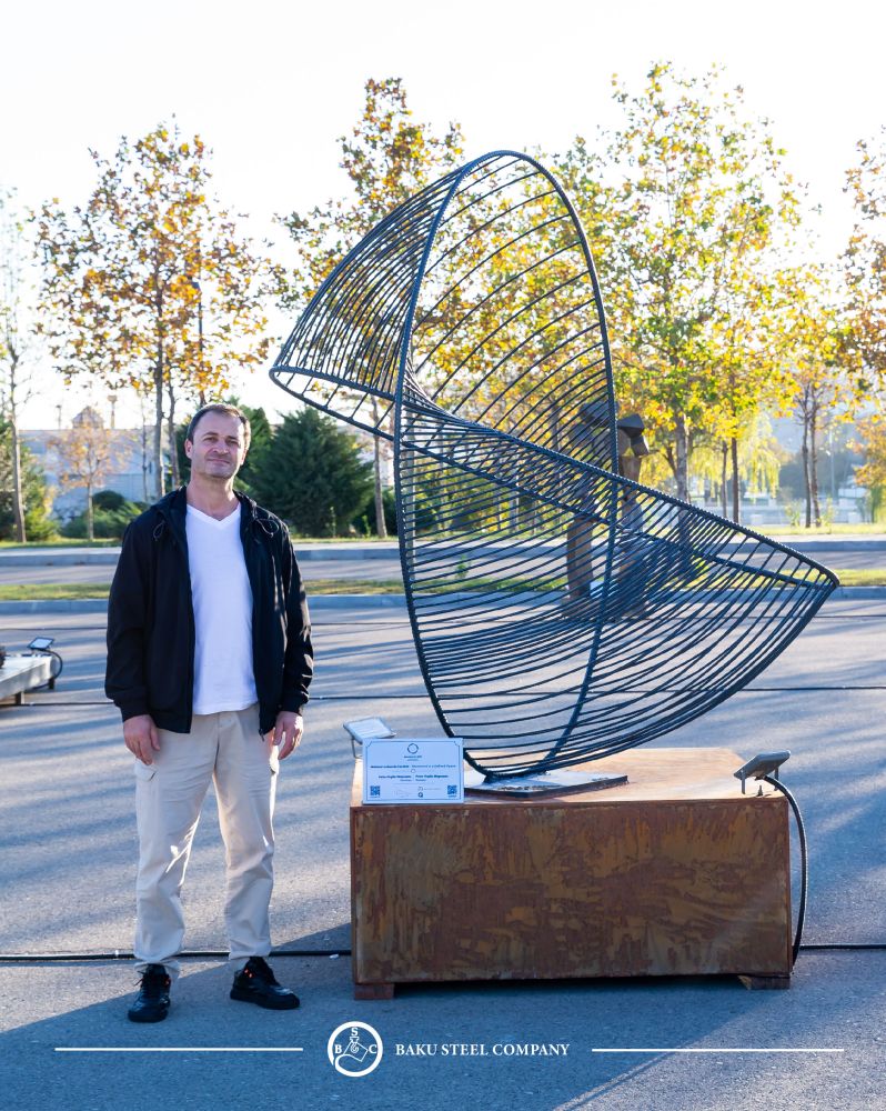 Petre Virgiliu Moqoşanu “Baku Steel Art 2025“ simpoziumunda “Məhdud məkanda hərəkət“ əsərini yaradıb. “Kosmosda olan hər bir cisim hərəkət edir və daimi transformasiya içindədir. Hər bir həcm, ona təsir edən amillərdən və təmasda olduğu cisimlərdən asılı olaraq, sonsuz sayda mümkün hərəkətə və ya istiqamətə malikdir.